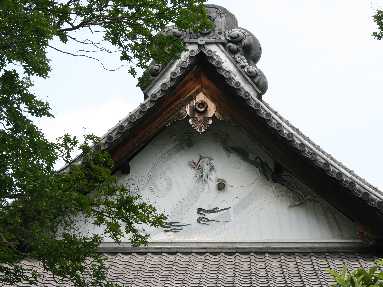 火災の後、輪道上人はただちに檀家の人たちと共に本堂の再建に着手しました。明治二十年のお盆には上棟式を行い、二十二年には落慶法要を行うことができました。これが、現在の本堂です。この本堂の西側の切り妻には、火災に遭わないようにと、火を鎮める水玉を持った龍が描かれています。